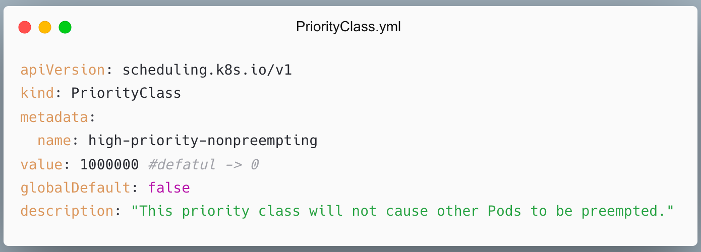 워커 노드에 CPU나 메모리가 충분하지 않거나, 사용하려는 포트를 이미 실행 중인 다른 파드가 점유 중인 경우에는 새로운 파드를 배포하지 못하는 상황이 발생할 수 있습니다. 하지만, 새롭게 생성할 파드가 매우 중요한 역할을 하는 애플리케이션이라면, 이러한 제약조건에도 불구하고 반드시 배포되어야 합니다. 이런 상황을 해결하기 위해 사용할 수 있는 것이 바로 PriorityClass입니다.