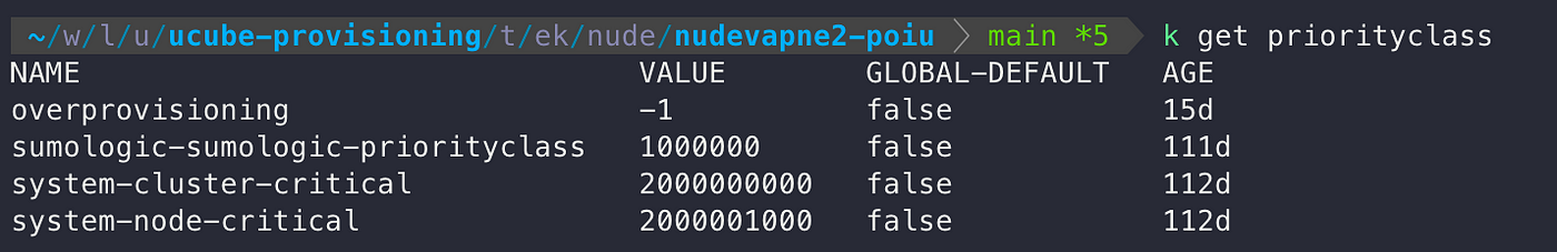 EKS 클러스터를 제일 처음 생성하고, priorityClass를 조회해 보면 기본적으로 system-cluster-critical과 system-node-critical이라는 2개의 PriorityClass가 높은 value를 가지고 생성되어 있는 것을 확인할 수 있습니다. 이 ProrityClass는 시스템에서 중요한 파드들에 적용되어 높은 우선순위를 가지도록 해줍니다.